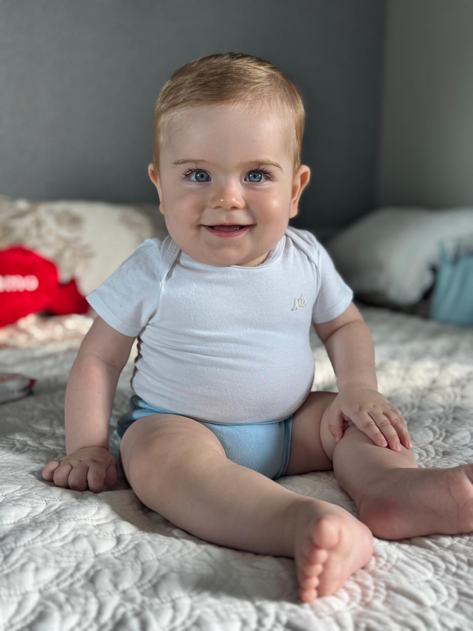 Categoria Baby Idade 0 ano Sexo Masculino Manequim G/GG Sapato 17 Peso 9kg Cintura 48cm Quadril 52cm Busto 50cm Cor Olhos Azuis Cor Cabelo Loiro Altura 0,71